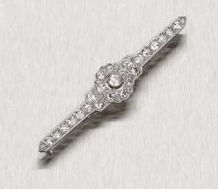 millegrain collet set to the centre with an early brilliant cut diamond, within a floral surround and flanked to either side by a tapered bar, set throughout with graduated early brilliant cut diamonds
