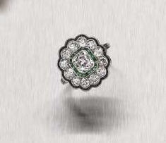 An emerald and diamond target cluster ring,