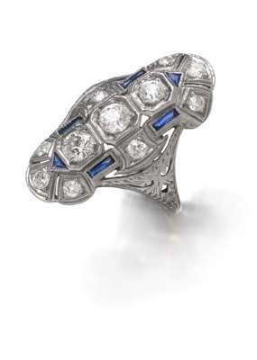 An Art Deco sapphire and diamond ring,