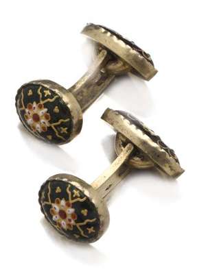 Of Regimental interest - a pair of 9ct gold enamelled cufflinks,