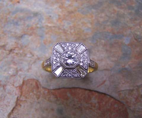An Art Deco platinum mounted diamond ring,