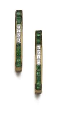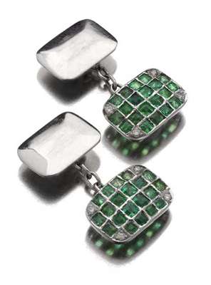 A pair of emerald and diamond set cufflinks,