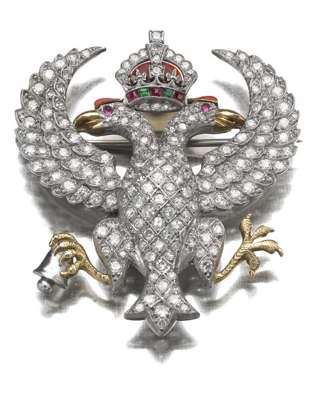 LANARKSHIRE YEOMANRY - a multi-gem set enamel decorated brooch,
