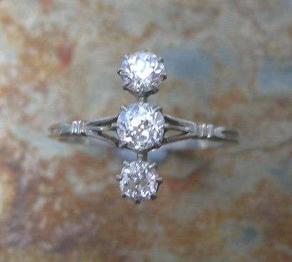 An early 20th century three-stone diamond ring,