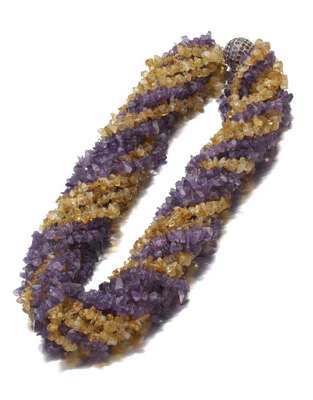 An amethyst and citrine necklace,