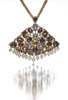 the pierced rounded triangular pendant, set with twenty-six assorted and multi-coloured gems, fringed by a row of pearls, the whole suspended from a circular section fancy link chain