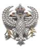 composed of a double-headed eagle surmounted by a crown and clutching a bell in one foot, pave set throughout with single cut diamonds