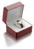 the white circular dial with black Arabic numerals and blue steel sword hands, signed, fitted to a black patent crocodile skin strap, with box and some documents