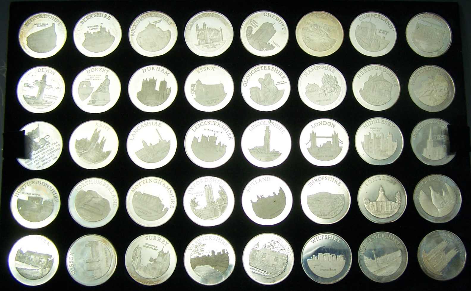 A cased set of English Counties Medallions,