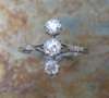 vertically claw set with three graduated old European cut diamonds, flanked by split shoulders