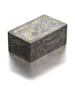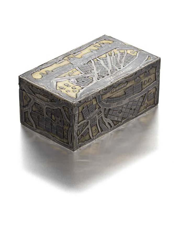 An early 19th century Russian silver parcel gilt and niello decorated table snuff box,