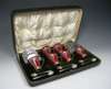 A cased mounted coffee set,
