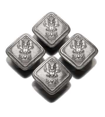with marks for James Lumsden and Company, Aberdeen, each of diamond shape with lion sergeant to centre on a hatched background, with integral loops to reverse which are marked around in the military outfitters style punch