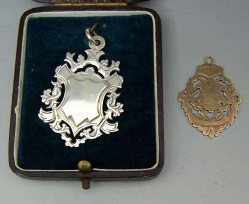 with marks for William Reid Christie, engraved N.S.F.A, 1895-96, won by CLACK FC, together with a plain Aberdeen Scottish provincial silver fob medal (2)