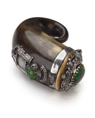 An early 19th century mounted horn snuff mull,