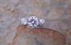 the central claw set round brilliant cut diamond, flanked to either side by an old European cut diamond
