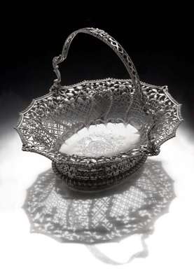 with marks for London 1767, maker William Plummer, of shaped oval form, with floral cast and chased borders and reticulated sides, raised on an oval foot, the interior with engraved armorials for BERKELEY of Gloucestershire