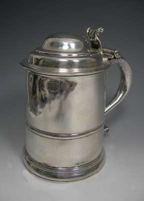 with marks for London 1719, maker's mark worn, with domed hinged cover with scroll thumb-piece, plain with engraved initials