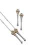 comprising a pair of pendant earrings and a necklace, each composed of tapering kite-shaped drops, with central yellow round brilliant cut foliate cluster, within similarly cut colourless diamond set borders, mounts stamped 750