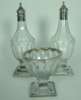 A pair of early 19th century mounted glass castors and matching sugar bowl,