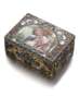 with marks for Fedor Ruckert, circa 1908-17, of rectangular form, the sides and hinged cover decorated in coloured enamel, the cover with a shaped panel, decorated en plein enamel of a young girl, wearing a traditional head dress and costume, marked to the underside