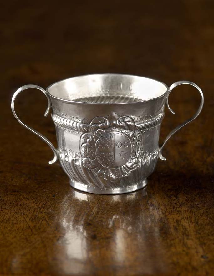London 1706, by William Fleming, with gadrooned and stylised shell borders, flanked by slender S-scroll reeded handles