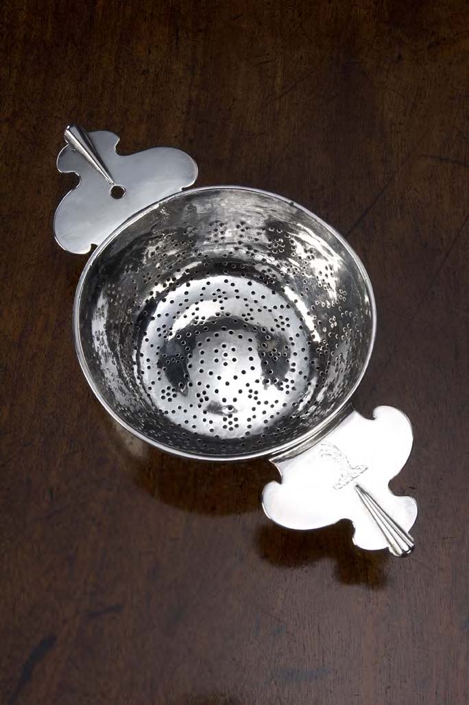 A George II twin-handled lemon strainer,