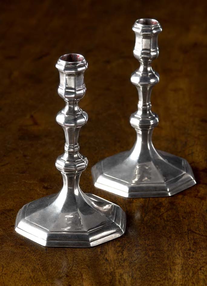 London 1712, maker's mark indistinct, of octagonal form, knopped stem, onto a spreading octagonal foot, moulded base