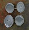 with shaped oval terminals, each engine turned, with harebell borders, the fronts collet set with a round brilliant cut diamond, conjoined by waisted links, stamped 14K