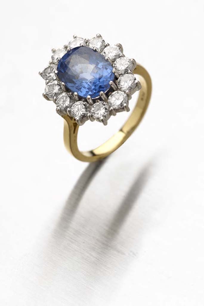 Estimated weights: sapphire 4.36cts; diamonds approximately 1.80cts total