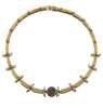 composed of gilt metal curved links, interspersed with pairs of simulated pearls, with central collet set circular panel depicting a classical portrait profile, with fitted case