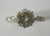 claw set with a round brilliant cut diamond, flanked to either shoulder by three round brilliant cut diamonds