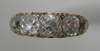 claw set with graduated old mine cut diamonds, with pairs of rose cut diamonds between and scroll pierced gallery