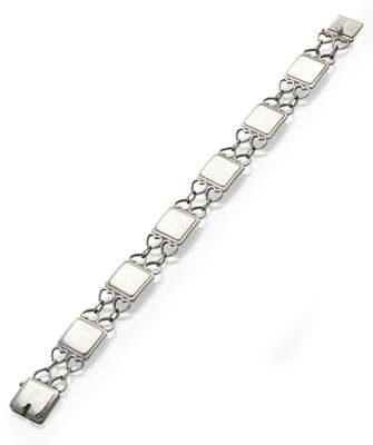 with 1933-44 mark, also stamped 925 S, STERLING, DENMARK, 70, composed of rounded square links conjoined by heart shaped belcher links, with snap fastening and safety clip
