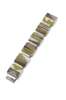 composed of curved rounded rectangular links decorated with shades of ochre, brown, black and white enamel, depicting circular, triangular and rectangular motifs with plain curved clasp