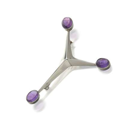 BENT GABRIELSEN - a 1950's silver mounted amethyst set brooch,