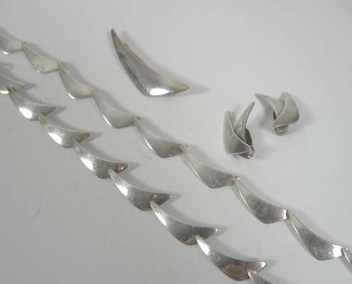 NIELS ERIK FROM - a 1960's silver necklace with matching bracelet, earrings and brooch,