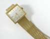 with import marks for London 1975, the champagne coloured square dial with gilt baton numerals and hands, signed, fitted to a satin-finished interwoven tapering bracelet, with fold-over clasp