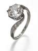 of cross-over design, the central claw set old mine cut diamond, flanked by scroll shoulders each set with three single-cut diamonds