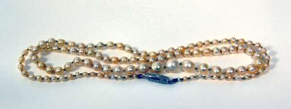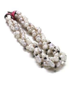 A pink and white baroque pearl and schorl torsade,