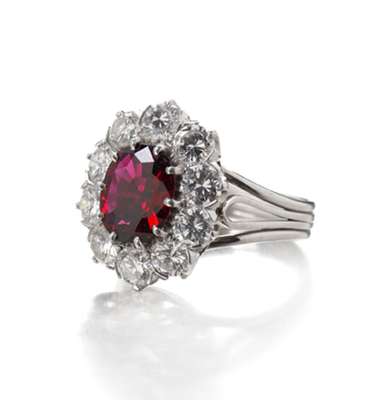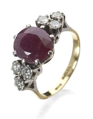 A ruby and diamond oval cluster ring,