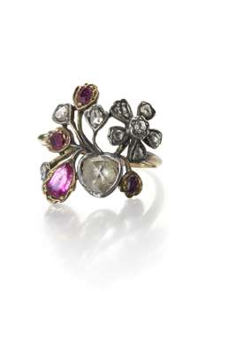 A ruby and diamond set giardinetto ring,