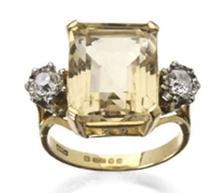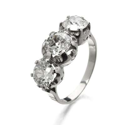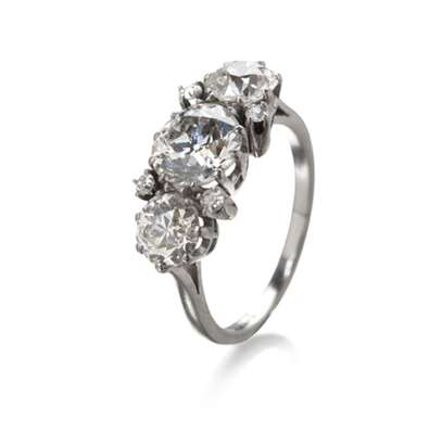 A diamond three-stone ring,