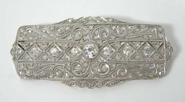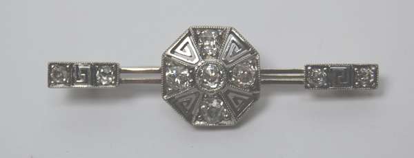 A diamond set bar brooch,