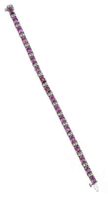 A pink sapphire and diamond set bracelet,