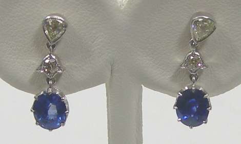 A pair of sapphire and diamond pendant earrings,