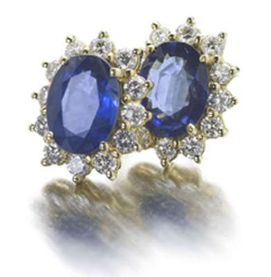A pair of 18ct gold mounted sapphire and diamond earrings,