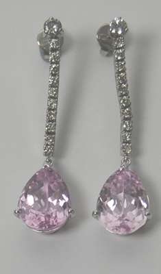 A pair of kunzite and diamond pendant earrings,