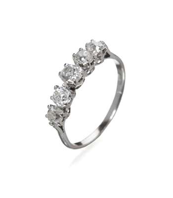 An 18ct white gold mounted five-stone diamond ring,