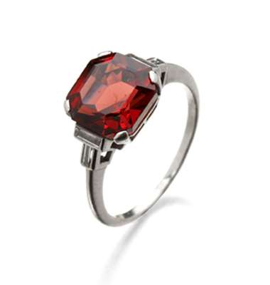 An Art Deco red spinel and diamond set ring,